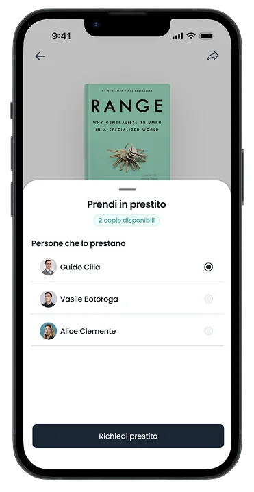 Ogni persona scansiona i libri che ha a casa. Il catalogo diventa una mappa di interessi, curiosità e passioni di tutta l'azienda.